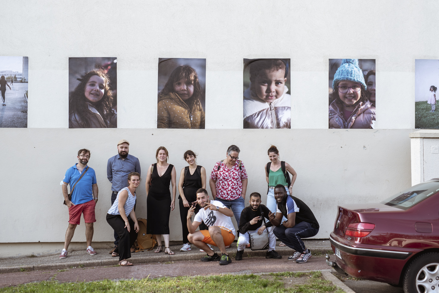 Enfin, nous mettons en place des expositions photographiques avec les partenaires de nos différents territoires, comme par exemple l’exposition « Traversées, entre murmures, récits et fiertés » qui s’est tenue à Rillieux-La-Pape en 2025 suite à des collectages photographiques dans le quartier Alagniers-Mont Blanc, ou à la médiathèque de Villeurbanne en 2026 suite à des collectages dans les Buers. Ces expositions sont parfois en extérieur, en prévoyant des collages muraux, comme sur les murs de l’école Jean Zay à Lyon.